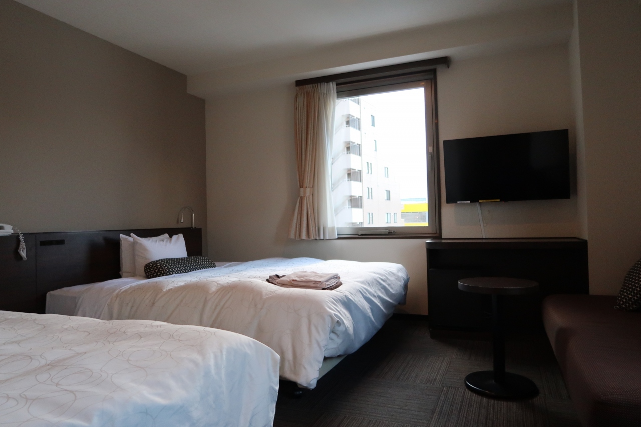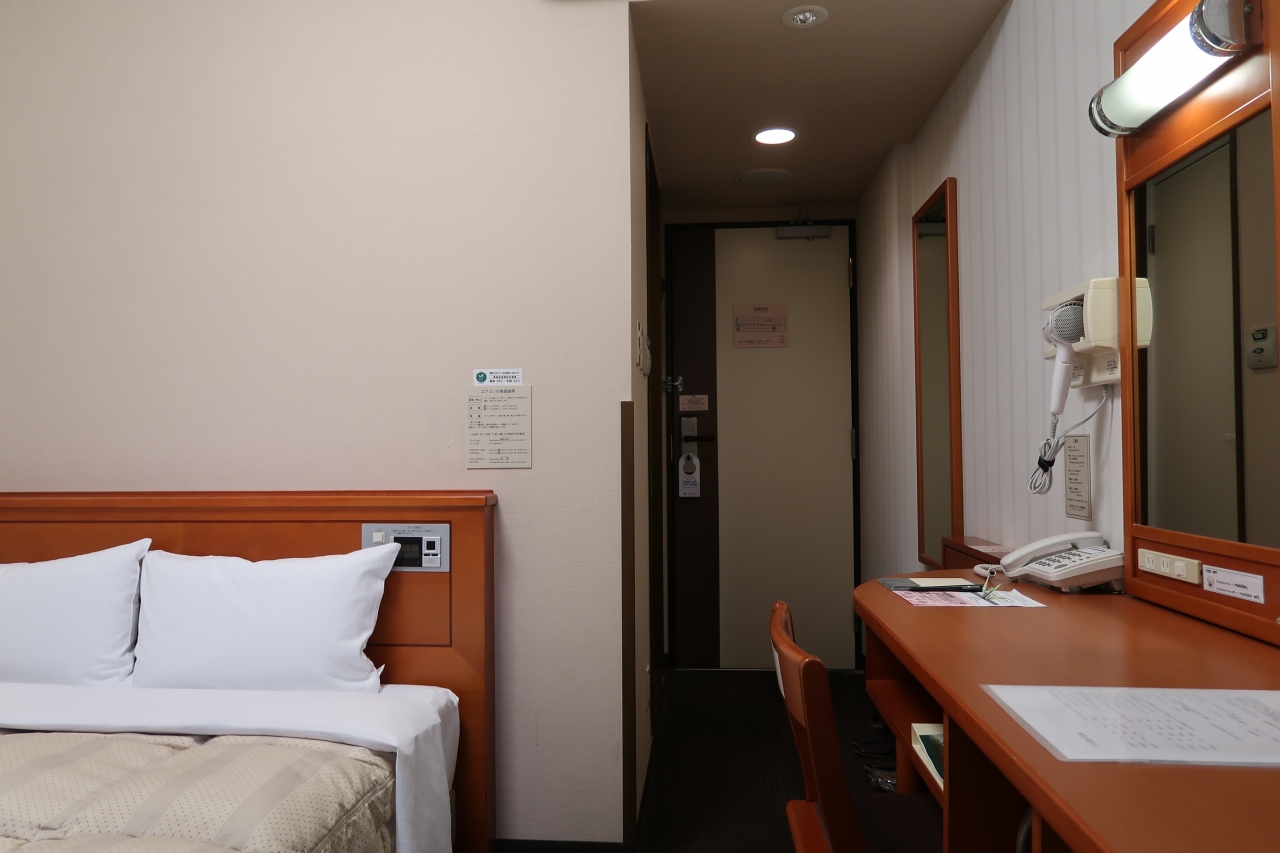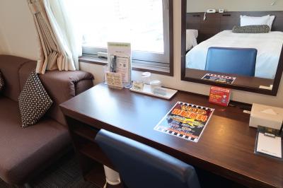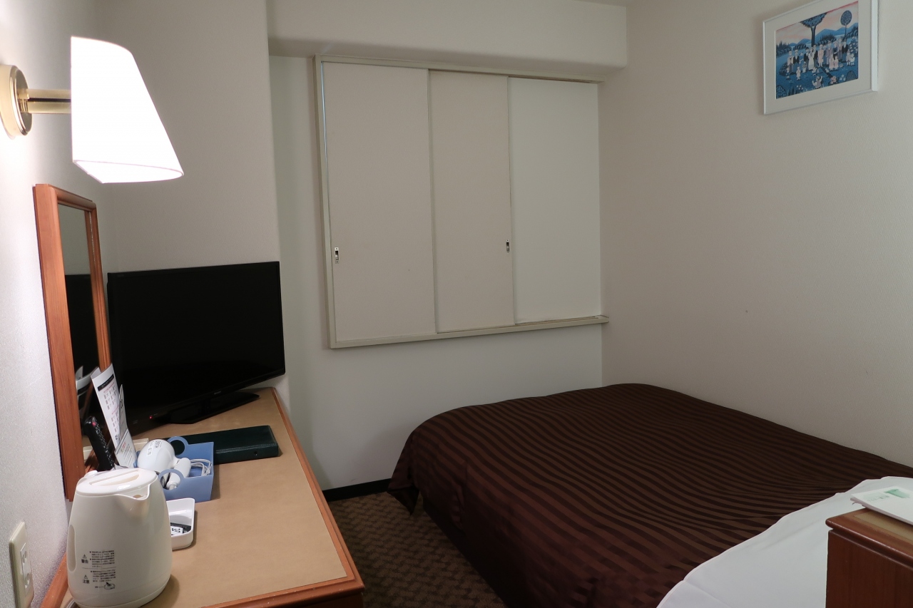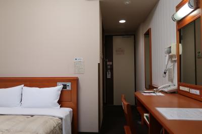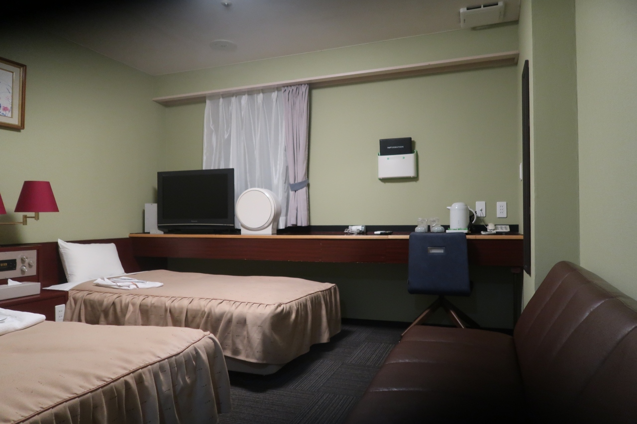 エコノミーツインをシングルユースで利用しました。徒歩数分の日帰り温泉施設「富士の湯」の入浴券が貰えるのも嬉しいポイント。手狭なツインと記載されてましたが1人で泊まる分には問題なし。多少古さを感じますが18平米の部屋にはソファーもありゆったり過ごせました。