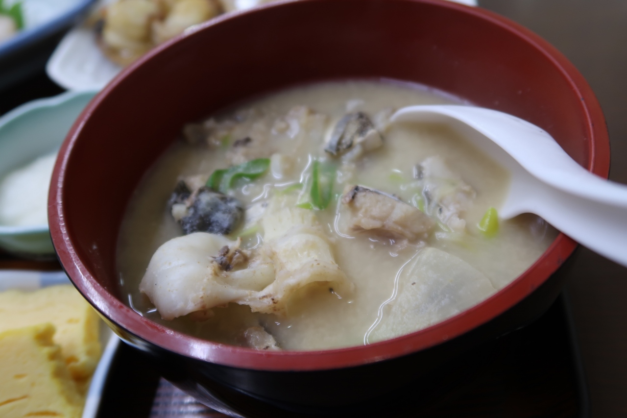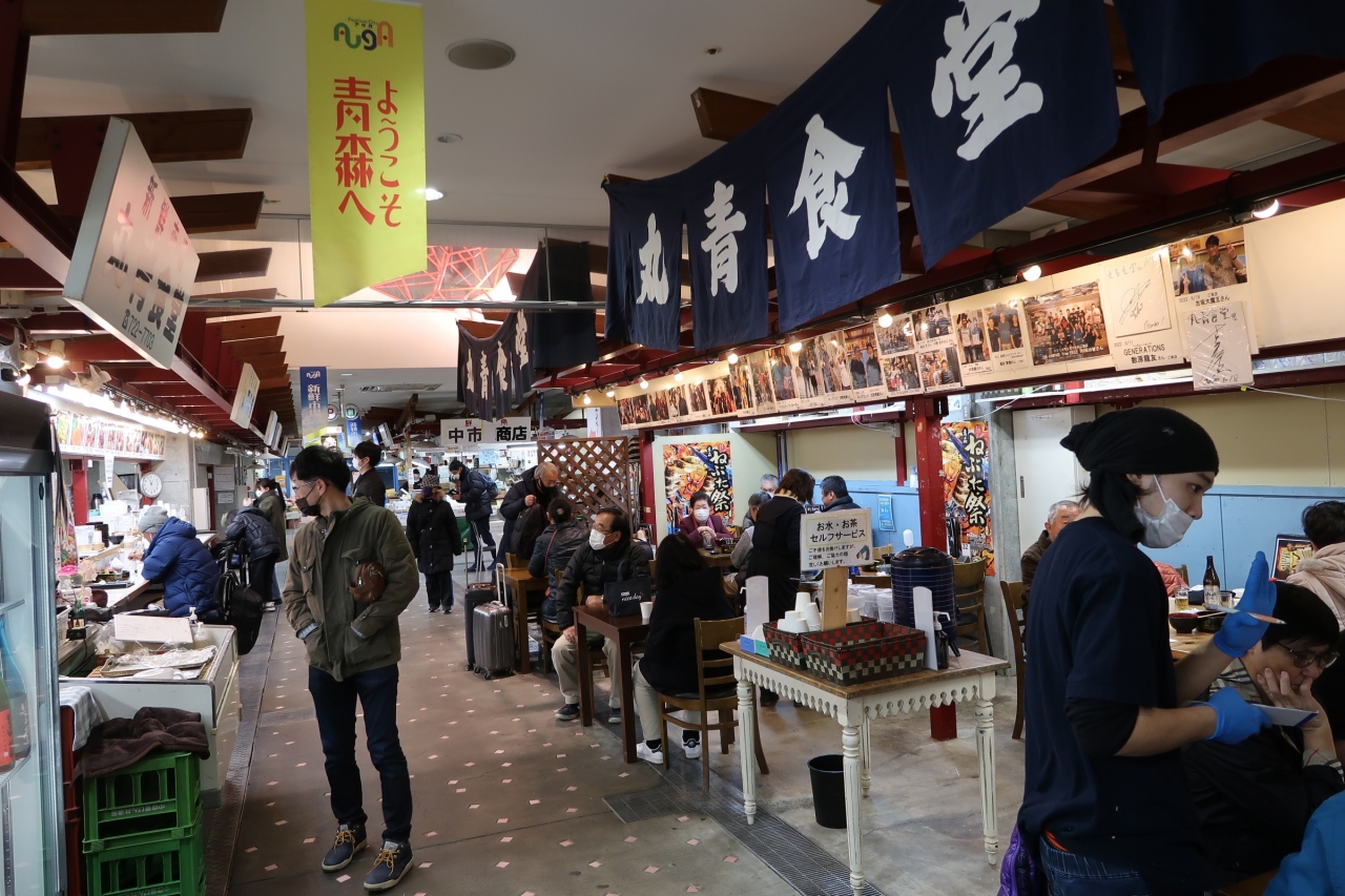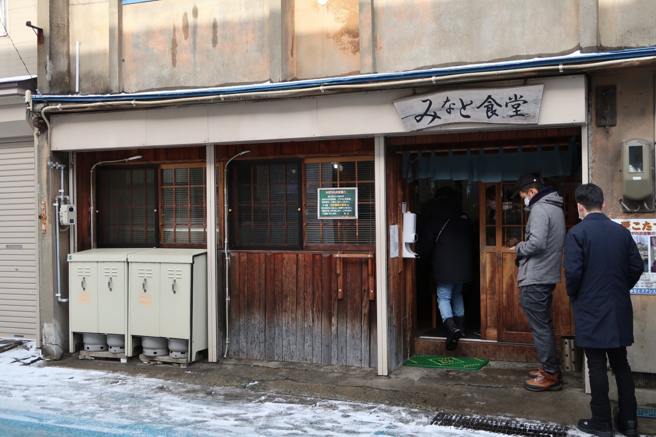 青森の郷土料理を気軽に楽しめる駅前の食堂です。半年ぶりに訪れた青森駅は雪の中。この時期に味わえる鱈のじゃっぱ汁を求めてお邪魔しました。何度も食べてるホタテの刺身とバター焼きがセットになった「ホタテ組み合わせ定食」に味噌汁をじゃっぱ汁に変更。メニューを見てみると500円定食が550円になってたり値上げの波は青森にも…