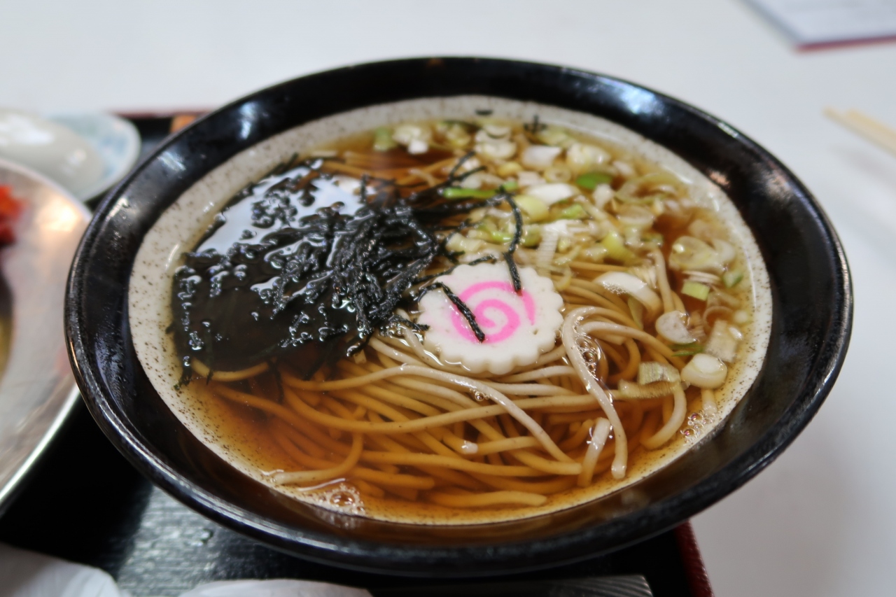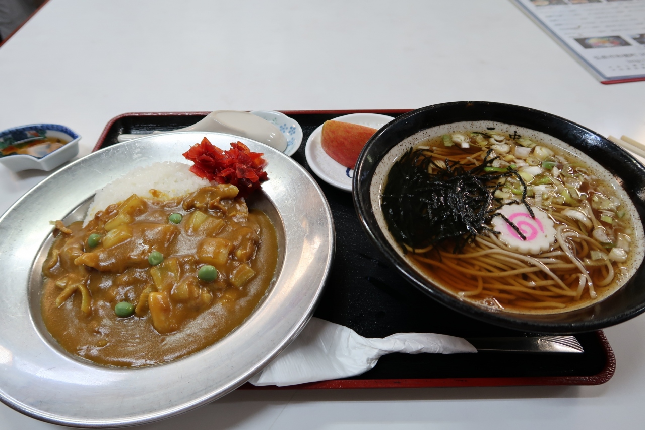 三忠食堂は明治40年(1907)創業で映画『津軽百年食堂』のモデルになった弘前の食堂です。店内はカウンター席とテーブル席があり夕方の中途半端な時間だったのでテーブル席に案内されました。メニューは蕎麦以外にもラーメン・うどん・カレーライスなどもありますが初志貫徹で津軽そばをオーダー、ついでにカレーセットにしてみました。焼き干しを使った風味豊かな出汁と箸でつかむとプツプツ切れるのが特徴の津軽そば。あっさりとした素朴な味わいに大満足、ごちそうさまでした。
