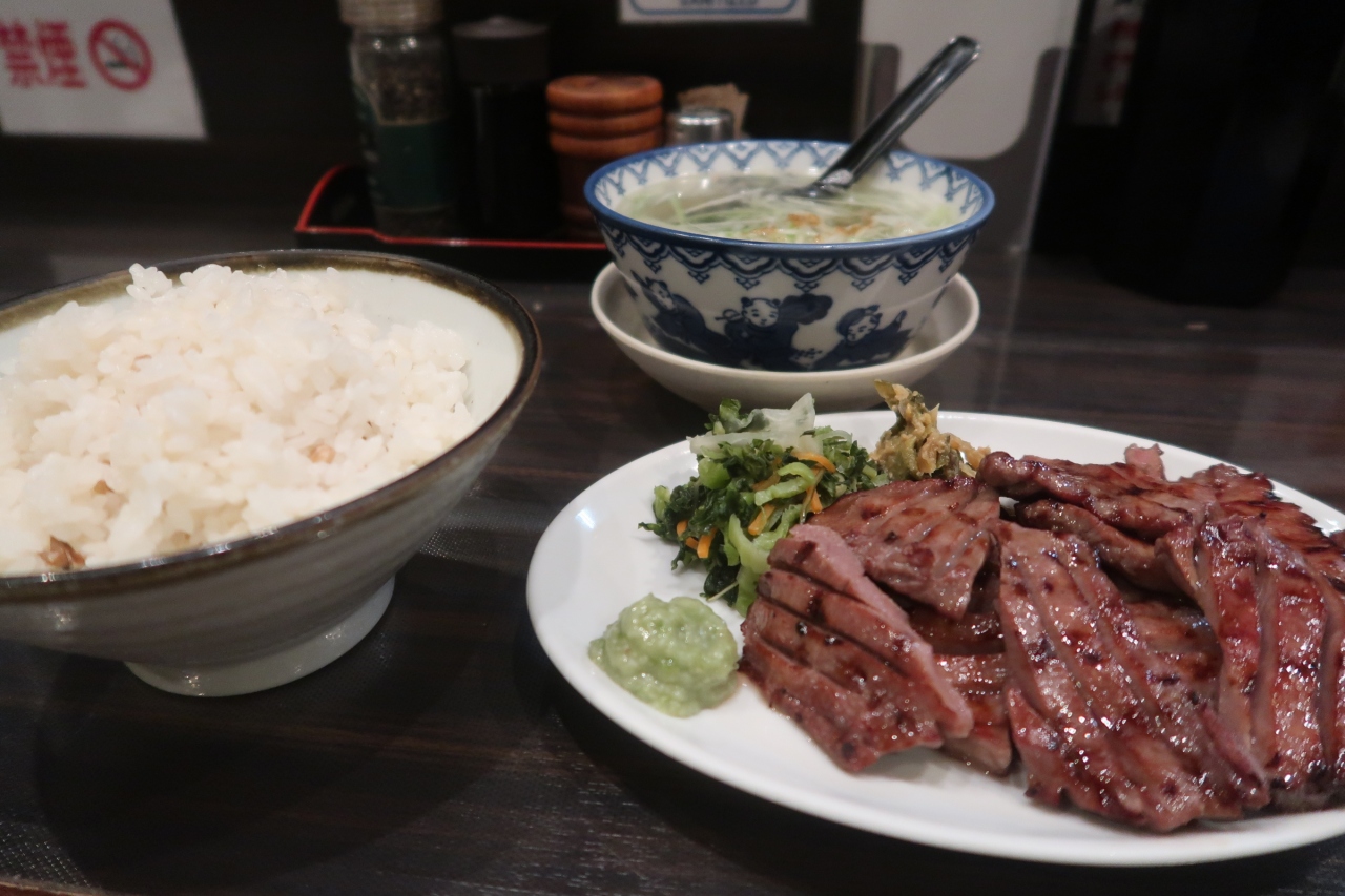 仙台といえば牛タン。駅前だけでも専門店が多数ありますが私のお気に入りのお店のひとつが司さん。熟成させた牛タンの芳醇な旨さが忘れられず、仙台を訪れた時はよく立ち寄ってます。今回も牛タン1.5人前定食をオーダー。厚みがあって噛み応えがあり、テールスープも美味しいですよ。