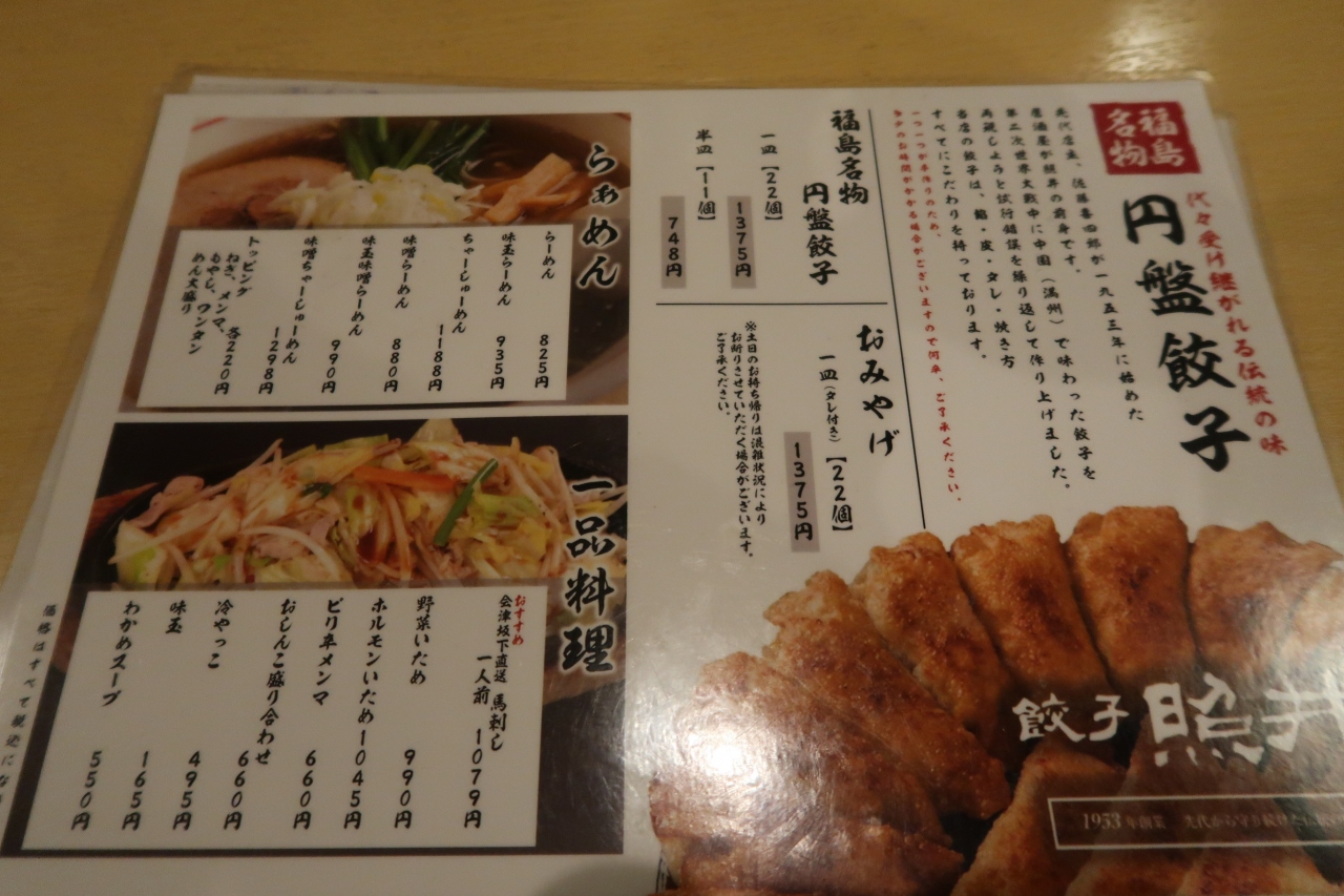 飯坂温泉で有名な餃子のお店です。営業時間は夕方5時から。ちょい飲み利用の地元客と観光客で店内はいつも賑わっています。オーダーはもちろんん円盤餃子(22個)注文を受けてから1個1個包んでいき、多めの油で焼き上げた餃子は表面が薄くてパリッとした食感。具材の野菜が多めなので何個でも食べれちゃうんです。