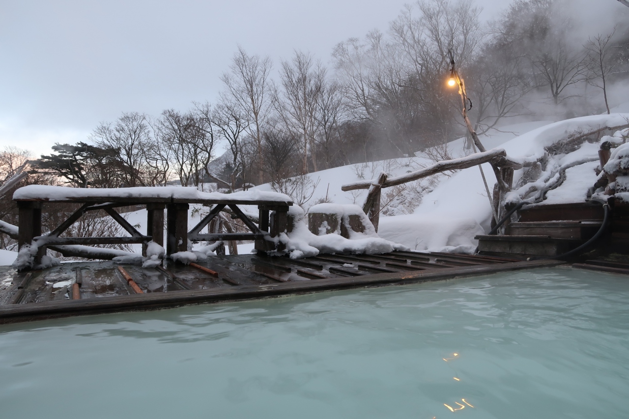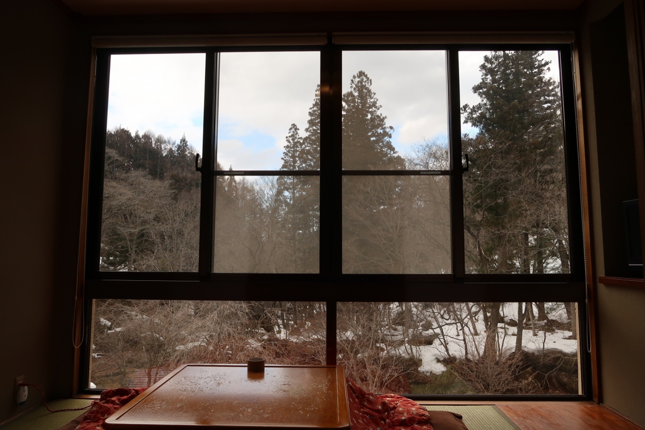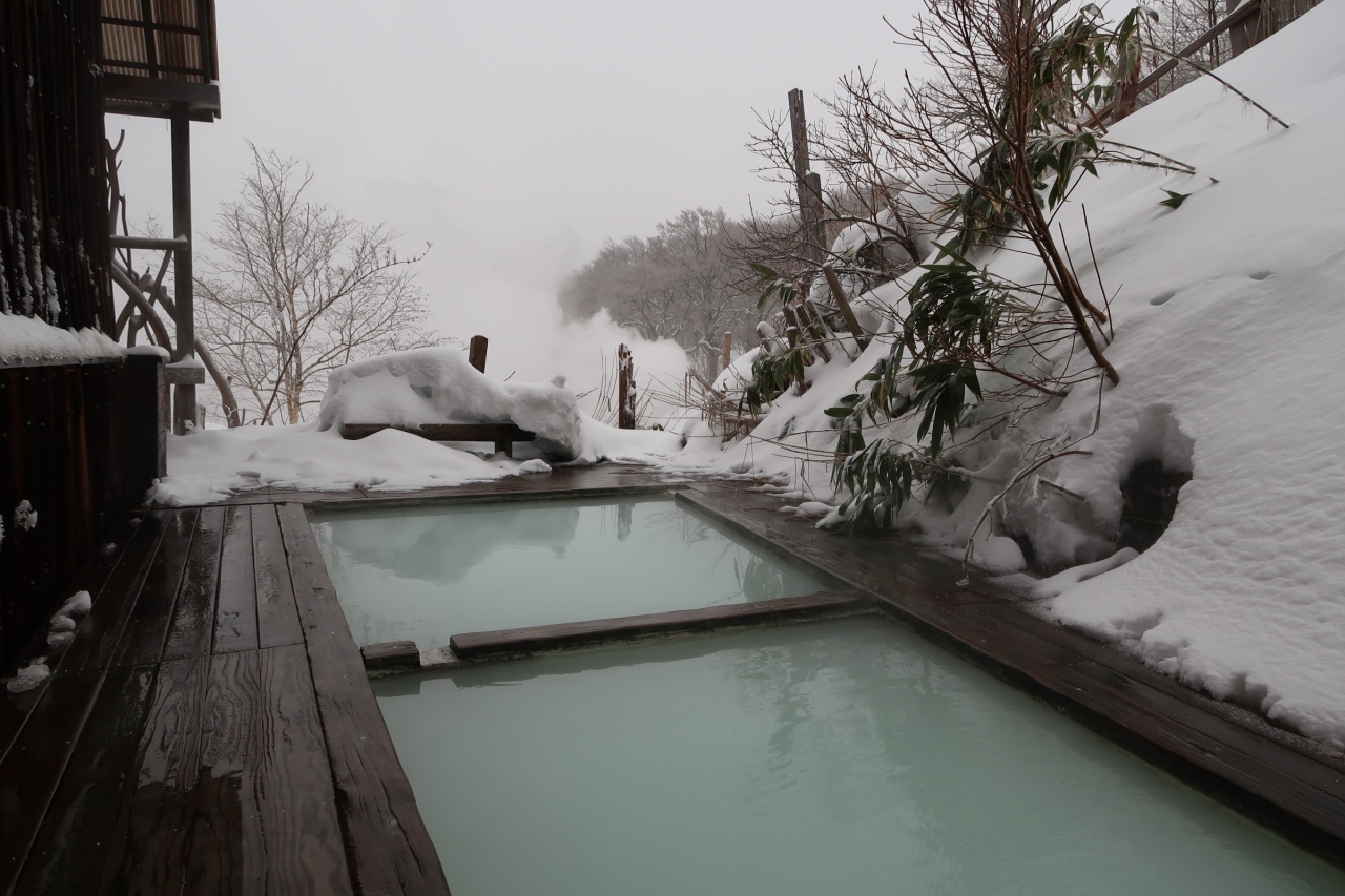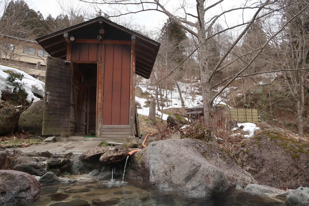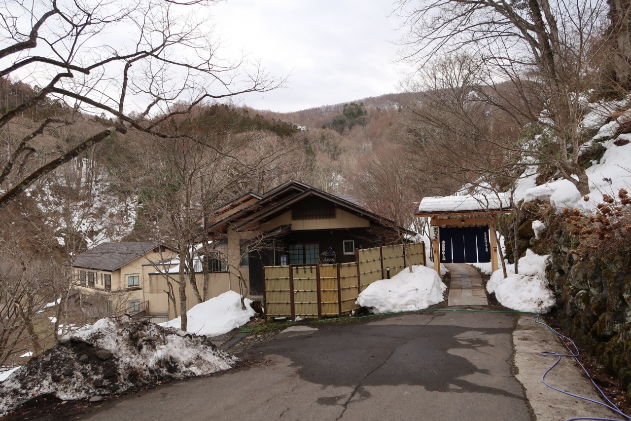 盛岡駅から路線バスに乗って訪れました。終点のバス停「松川温泉」で降りると宿が目の前です。トイレ付の本館とトイレ共用の別館があり本館を予約。通されたお部屋は和室7.5畳の角部屋。冬季は地熱発電の暖房で館内はどこもポッカポカ。就寝時は部屋の窓を少し開けて寝たほどです。夕食が部屋出しなのも嬉しいポイント。ホロホロ鳥鍋・川魚の刺身・岩魚の天ぷら、山菜など地元食材を使った料理が並びます。温泉は内風呂と混浴露天風呂があり24時間入浴可能なので白濁の硫黄泉で雪見風呂を楽しんできました。