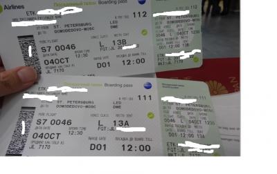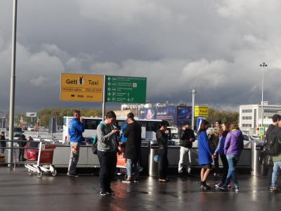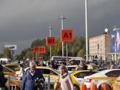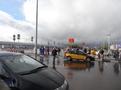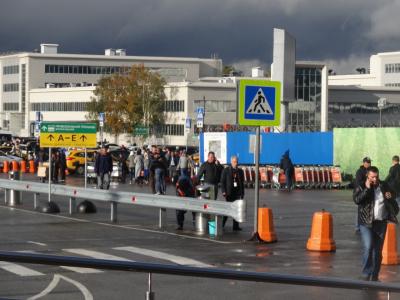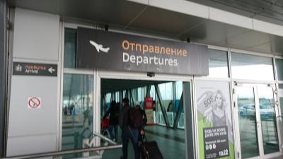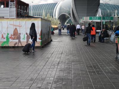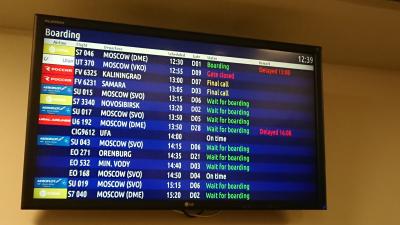 ドモジェドヴォ空港に到着しました。30分の遅延で急いでいるのに女子2人...
