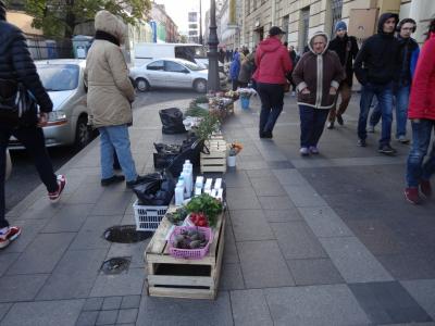 お年寄りが市場の通り沿いに野菜の出店だしてました