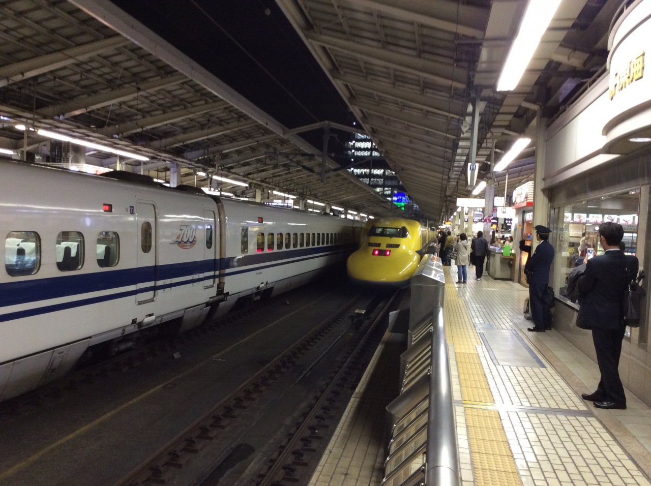 東京駅の東海道新幹線ホームでドクターイエローに遭遇しました。日時は平成28年4月12日、20時50分前後でした。以前、京都市を走行中のドクターイエローを見かけて以来、2度目です。何か良いことがあると信じて今日はゆっくりと休みます!