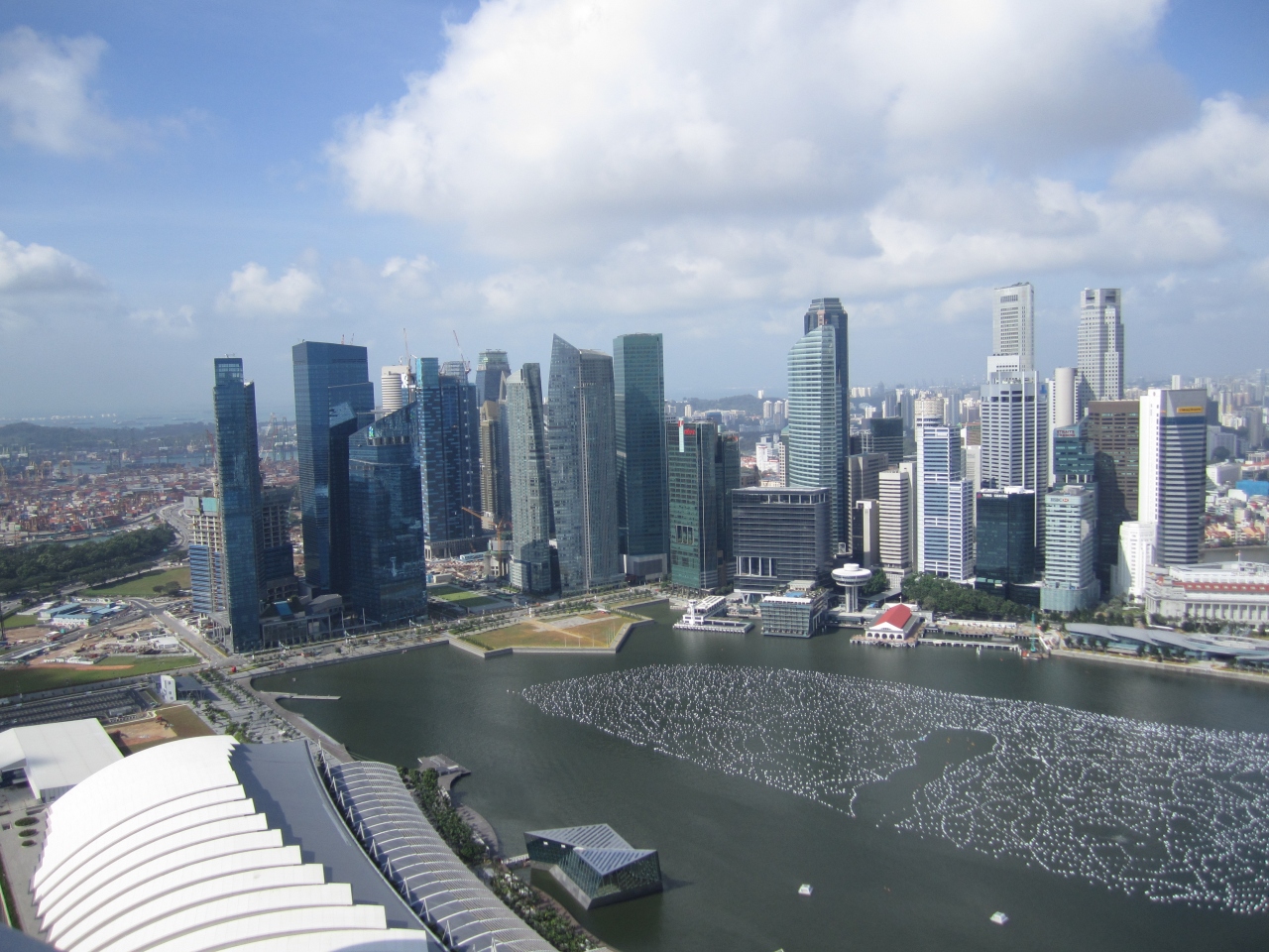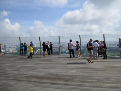 マリーナベイサンズにある空中庭園。見晴らしは最高です。晴れていればなお良かったのですが・・・。空中庭園から宿泊者が利用出来る空中プールに通じる通路がありますが、スタッフの方がおられチェックをされています。