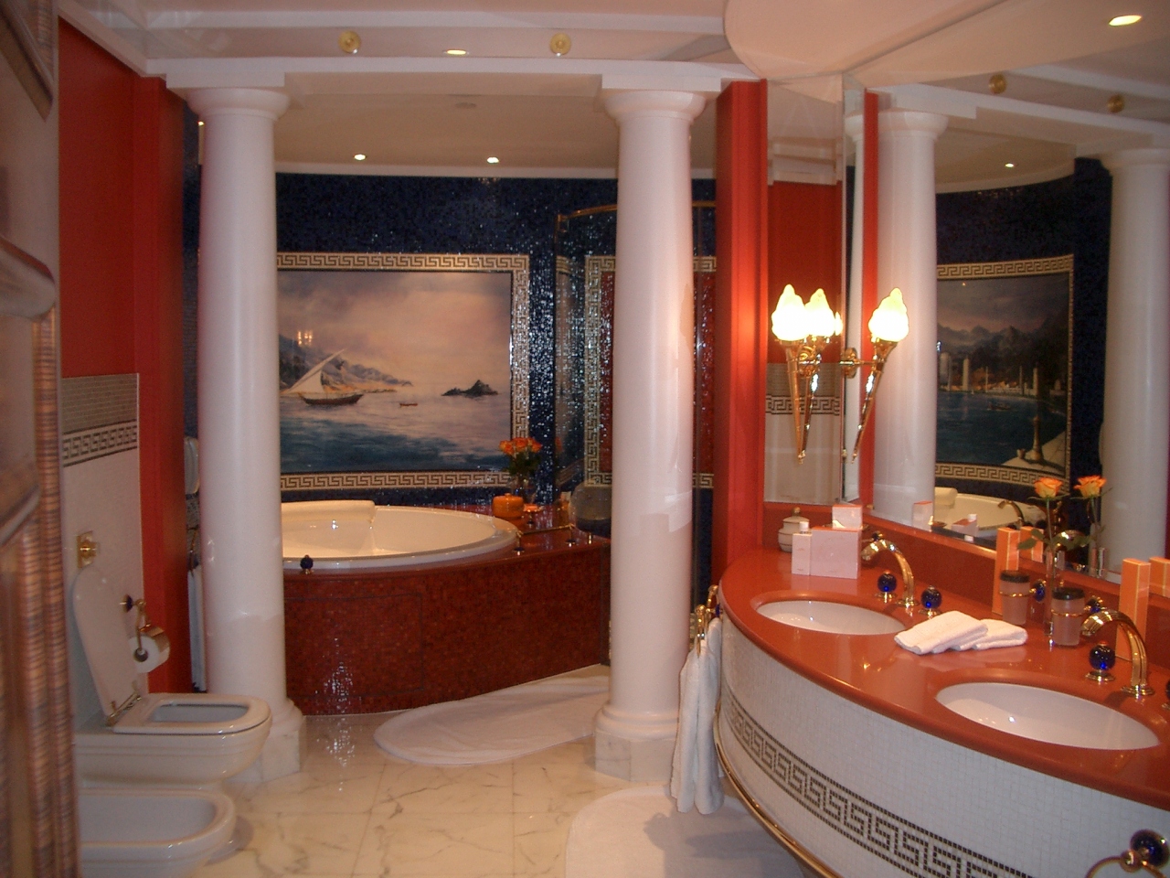 ホテルはすべてにおいてゴージャスの一言。お部屋はらせん階段付きのメゾネットタイプで1階は広すぎるリビングとパソコン完備の書斎で、2階はベッドルームとバスルーム。アメニティは全てエルメス。各階のエレベーターを降りると直ぐコンシェルジェがいて、食事のリザベーションや様々な手配が、部屋に入る歩く間の会話の中で相談出来たり対応が良くストレスフリーでした。また、コンシェルジェとは別に専属の執事が24時間体制で就いてくれるので、部屋に戻ってくると必ず声をかけてくれてワインフルボトルやフルーツ、軽食、アフターヌーン的なスイーツ等次から次へと持って来てくれます。レストランでの食事が出来ない位です。