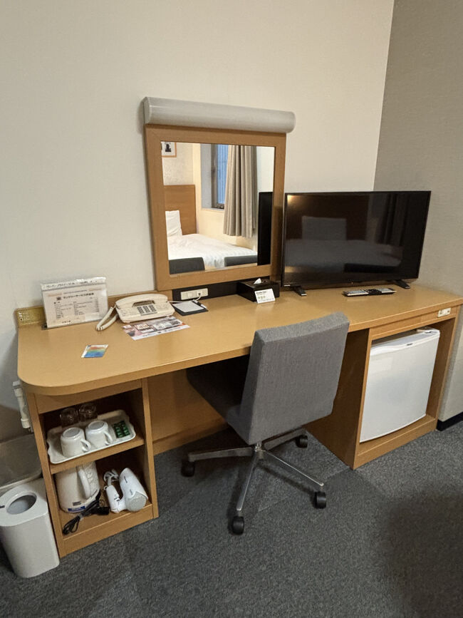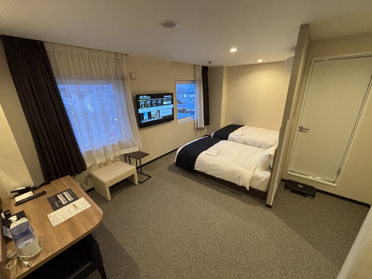 普通のビジネスホテルですが、少し広めの部屋でした。