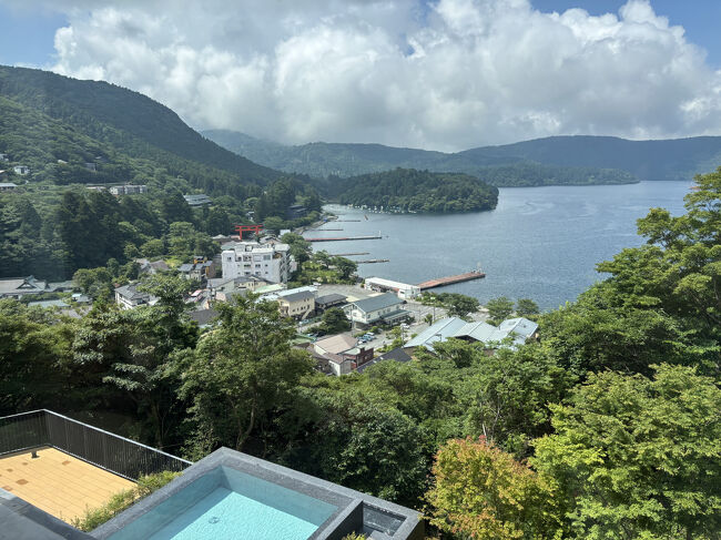 私は入りませんでしたが、プールは泳ぐというより浸かるプールで、芦ノ湖に向かってせり出しています。