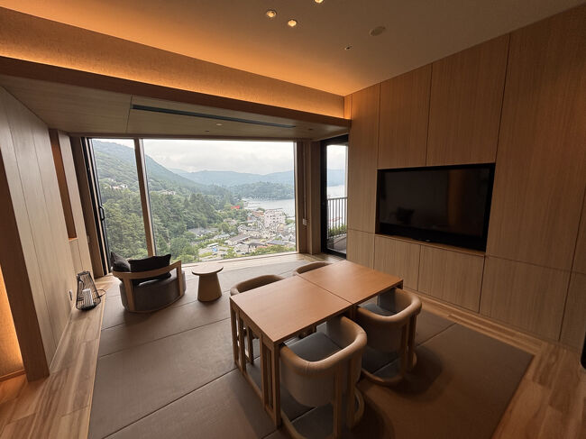 お部屋は65平米と広く、芦ノ湖を綺麗に見渡すことができました。