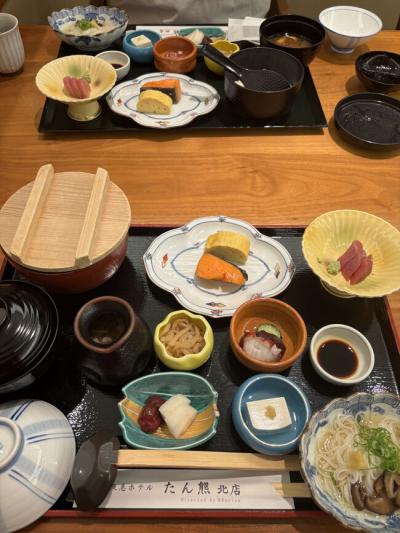 朝食は、ビュッフェ形式で2回、日本料理のたん熊で2回戴きました。