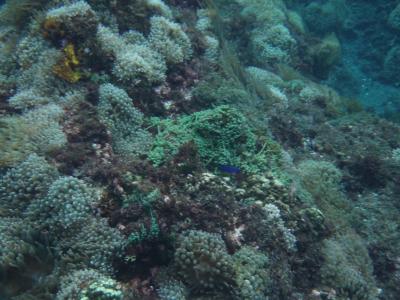 黒潮の影響で、チョチョウウオやカクレクマノミのような熱帯魚を沢山見ることができました。サンゴはまだ沢山ありませんが成長している途上です。伊豆はとても透明です。
