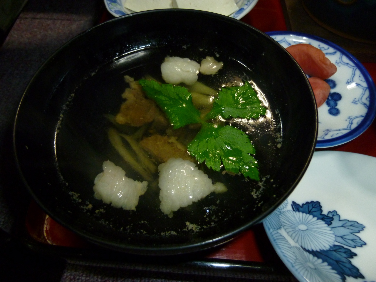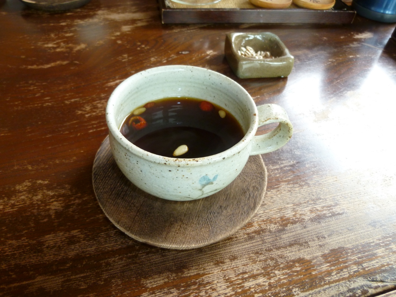 いろいろな種類のお茶を楽しむことができ、日本茶、カリン茶、ナツメ茶を飲みました。