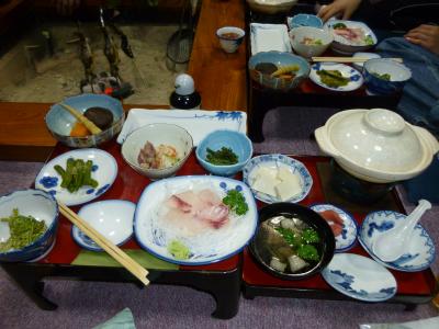 地元の山菜や川魚を使った郷土料理を囲炉裏の部屋で食べさせてくれます。