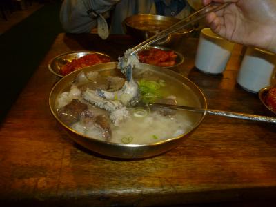 コムタン(牛の内臓煮込み)の専門店です。牛の内臓煮込みというと引いてしまう人がいるかもしれませんが、ハドングァン (河東館) のコムタンは癖がなくて美味しかったです。朝ご飯として食べに行きましたが癖がなくておしかったです。メニューは牛のコムタンしかありませんでした。キムチやご飯がセットになっていておかわりができました。とてもおいしかったです。