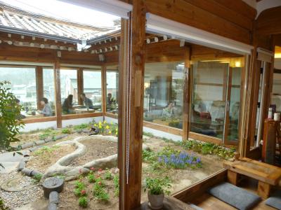 三清堂を散策していて民家かなと思ったらカフェでした。韓国には珍しい畳敷きの部屋で素敵な庭に面していました。