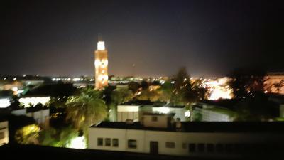 夕食はバイキングで、魚料理が美味しかったですがパンは固くて美味しくありませんでした。屋上からハッサンの塔や街が見渡せ、夜景がきれいです。- 旅行時期