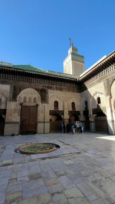 1357年に完成したフェズでもっとも古い神学校です。広場の床は大理石でできていてとてもきれいでした。靴で歩いてしまっていいのかなと思うほどです。壁の装飾も美しくイスラム調の精巧な装飾がなされていました。