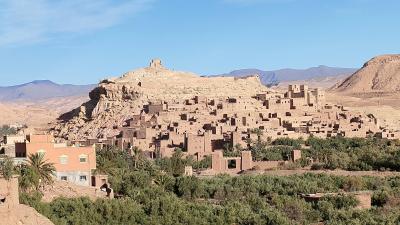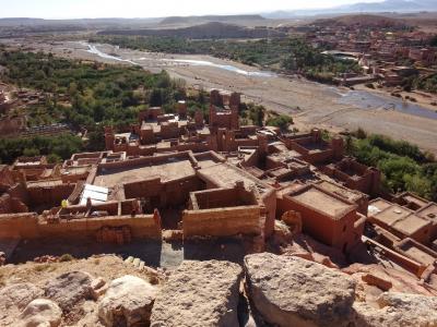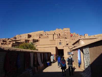 普通は橋を渡ってアイット・ベン・ハドゥへ入って行きますが、私達はロバで川をわたり集落に入りました。そのため正面から入ることができてよかったです。日干しレンガでできている高層建築で、日干しレンガなので頻繁に補修しているそうです。素晴らしい建築でした。