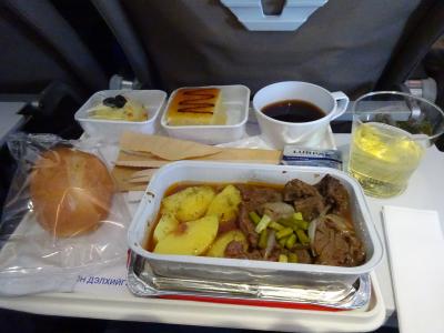 飛行機は、3列、3列の小さな飛行機で、後部にトイレが2つしか無いので食事の後はトイレの長蛇の列でした。