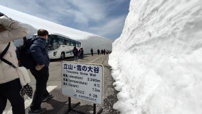4月15日から見られるようになった「雪の大谷」を見に立山黒部アルペンルートに行ってきました。アジアから二人たちを中心に平日にも関わらずかなり混んでいました。日本人観光客は少なめでした。天気が良かったのでアルプスもよく見えました。