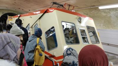扇沢から黒部湖に行くのにこの電気バスに乗りました。前に来たときはトロリーバスだったのですが、2018年に電気バスに変わったそうです。4台ほど連続して運行され、約6分でダムに着きました。このトンネルの真中には大きな破砕帯があって、ここで大規模な出水があり、そこだけで13ヶ月もかかる大工事だったそうです。
