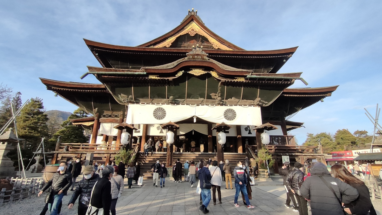 2023年1月7日に遅ればせながら善光寺に初詣に行ってきました。新年になってもう一週間も立つのでかなり空いてきているのかと思いましたが、写真のようにかなりの参拝客で参道も混み合っていました。