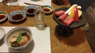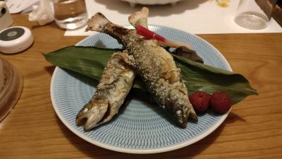 魚のお作りや黒毛和牛の石焼、岩魚の塩焼きなどがでて締めはとうじ蕎麦でした。