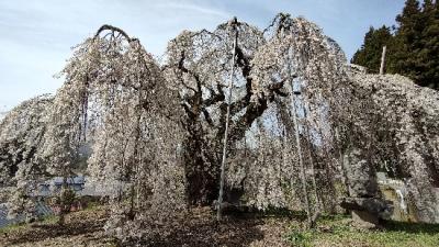 長野県飯綱町袖之山のシダレザクラを見に行ってきました。