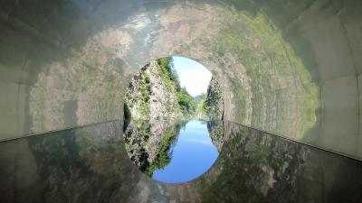 以前は遊歩道がありそこを歩いて渓谷を見ることができたのですが崩落事故のため通行ができなくなり、1996年に清津峡渓谷トンネルができました。