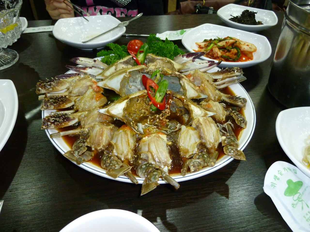たしかに、美味しいです。カンジャンケジャンは生のワタリガニを醤油に漬けたものです。蟹を食べた後の甲羅にご飯を入れて食べるのもとても美味しかったです。