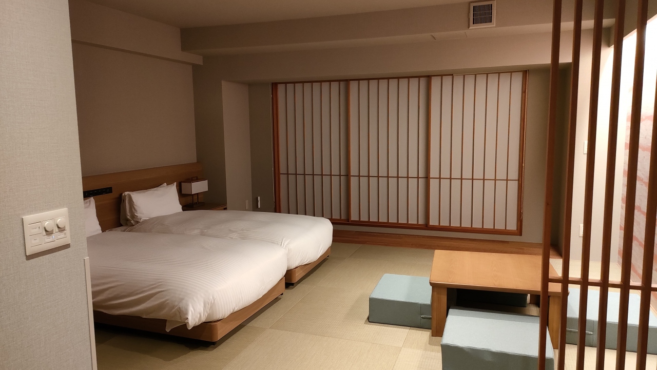 とてもお洒落なホテルで、写真のようにベッドルームは落ち着いた和室でした。