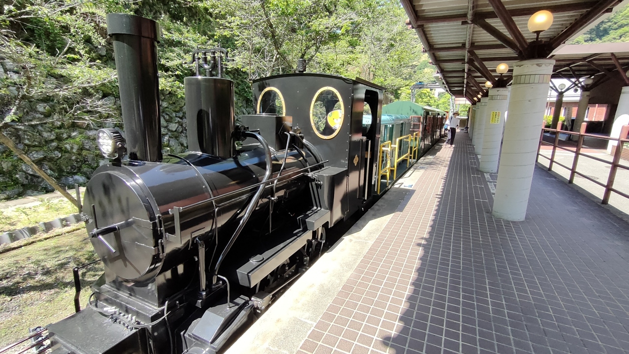 マイントピア別子の端出場ゾーンでは観光坑道に入り昔の銅の運搬の様子を知ることができます。チケットを買って蒸気機関車に乗って坑道入口まで行きます。徒歩では行かれません。