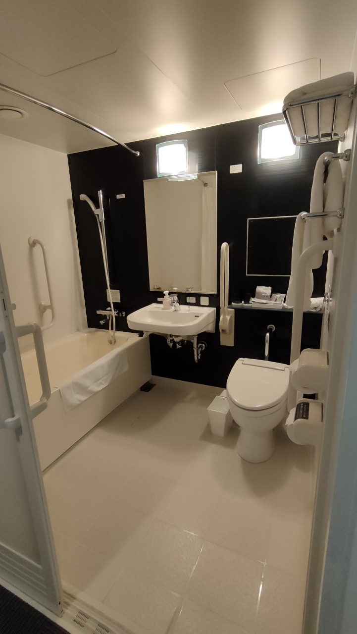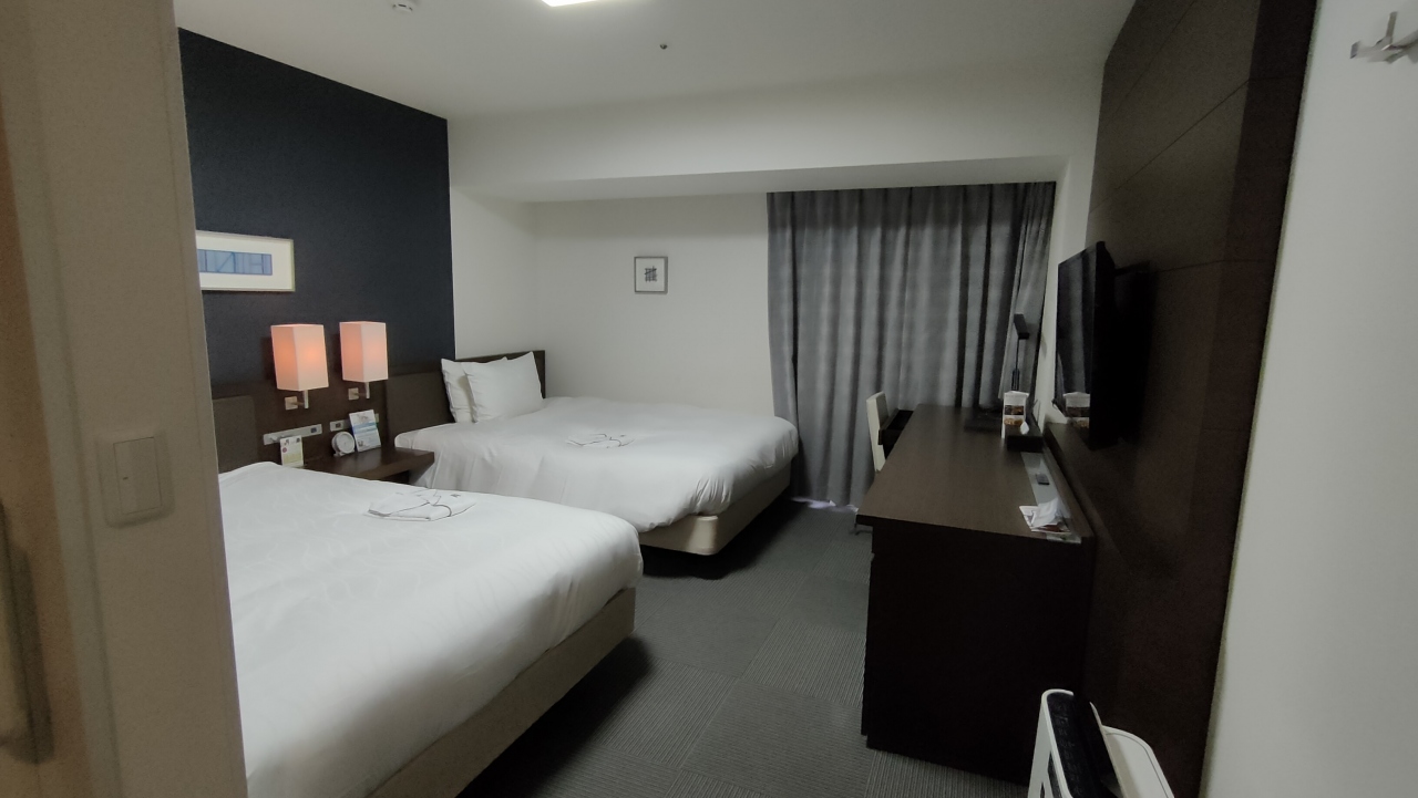 福山駅前で立地がよく、ホテルビルの中に駐車場があるので、駐車場を降りてエレベーターに乗ればフロントに行かれるという便利な構造になっていました。