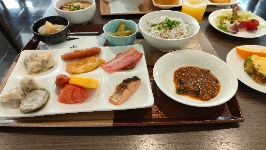 朝食バイキングのバリエーションが多く、しらす丼や福山ラーメンが食べられてよかったです。