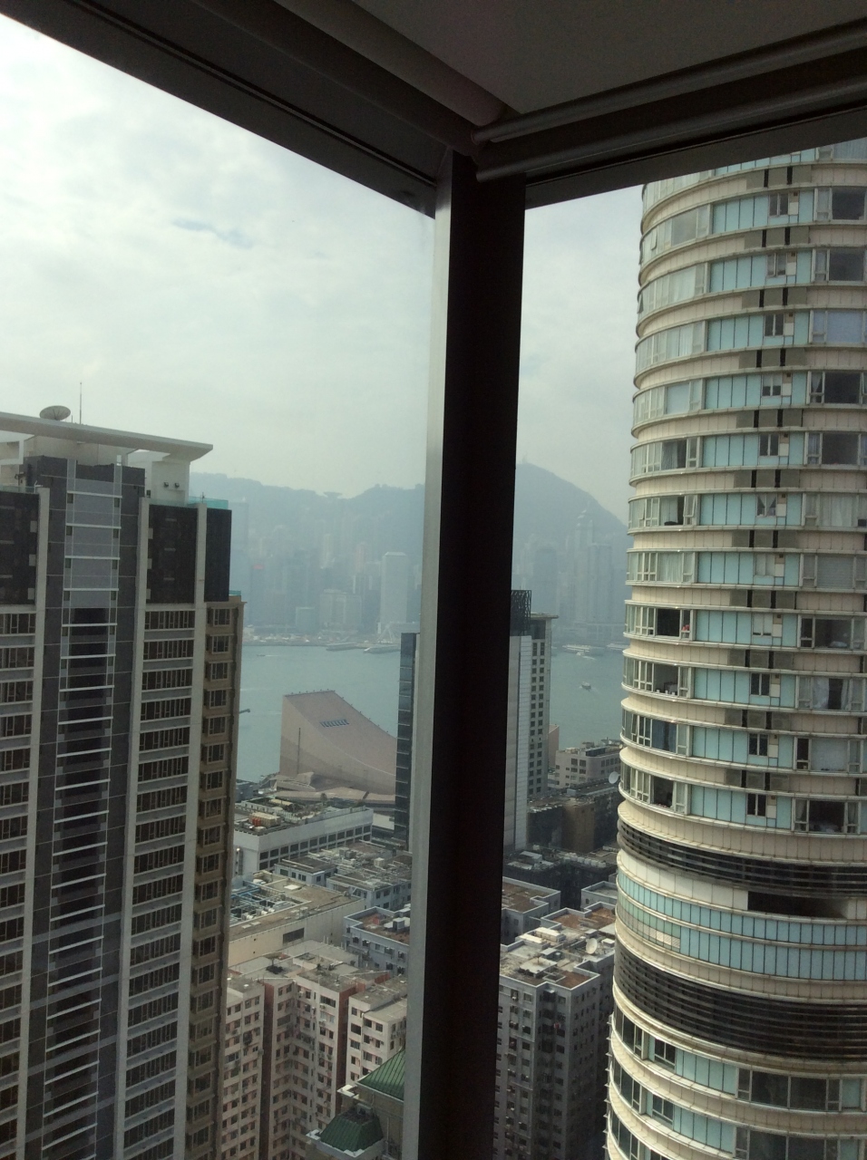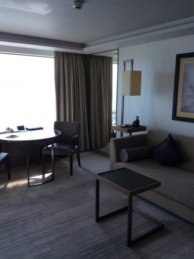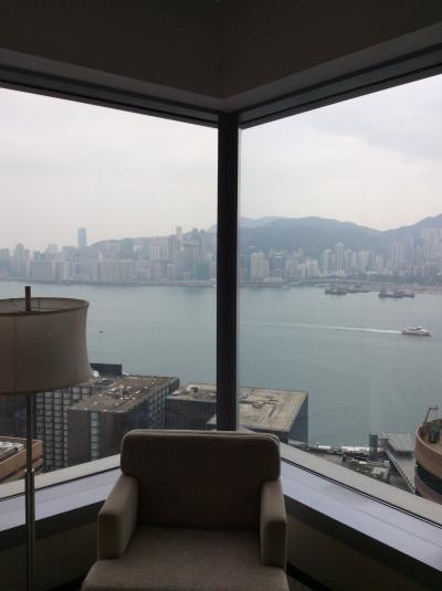 宿泊したお部屋は30階のハーバービュー10号室でまあまあの眺めでした。右手にハイアット、目の前に建設中の高層ビルがあるので多分どの部屋に泊まってもスッキリ見渡せることはないかと・・・。