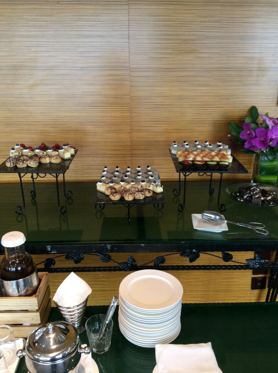 朝食もここでいただきましたが、並んでいるのは種類が少ないです。別にオーダーできるメニューがテーブルにあるのでスタッフに頼むと、下のレストランから運んで来てくれます。熱々の点心やオムレツ、パンケーキ等いただけました。
