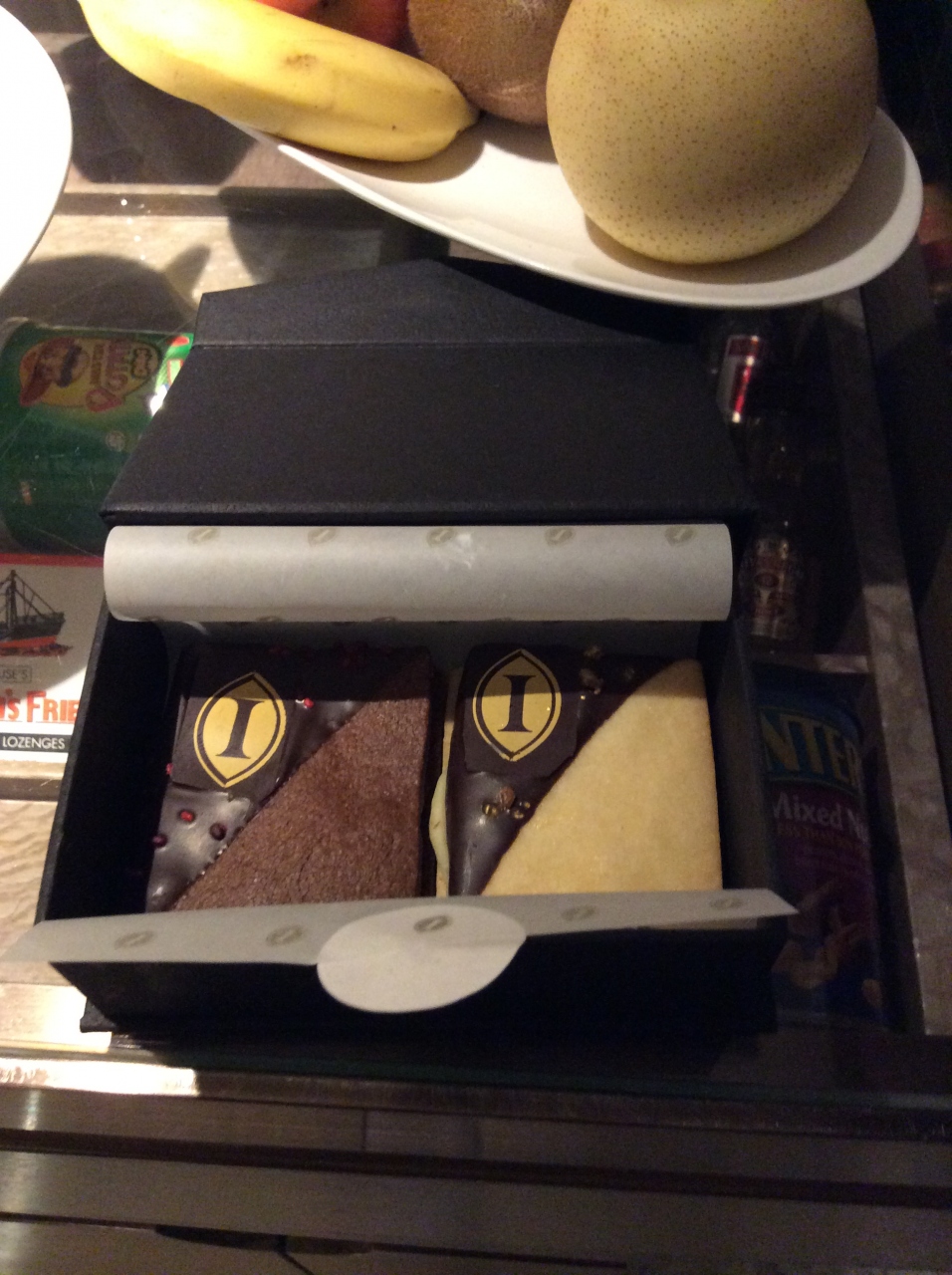 ウェルカムフルーツは毎日交換され、チョコではなくてオリジナルクッキーがありました。