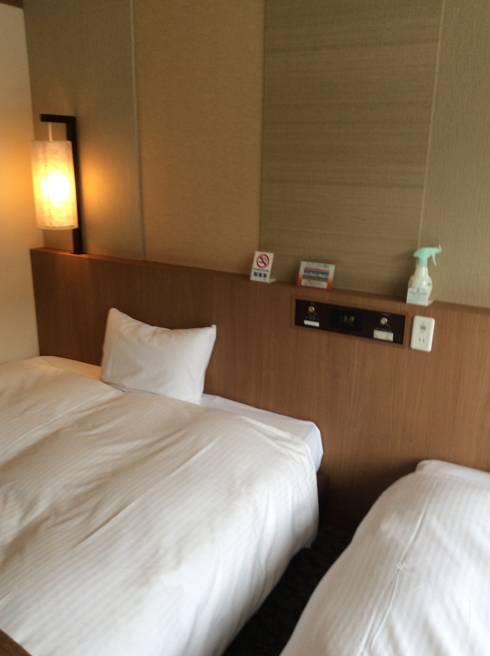 ベッドはかなり広くて、ダブルとセミダブルのツインみたいでした。