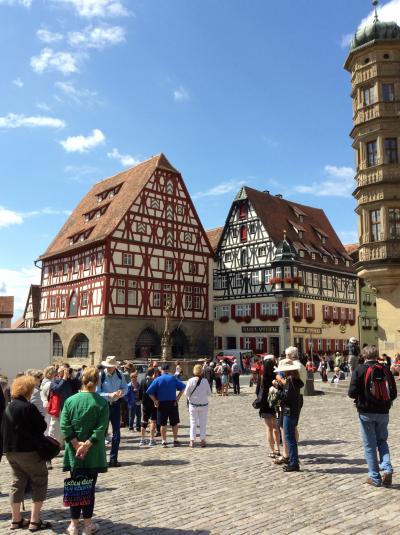 三角屋根の似たような建物が多いローテンブルクの街ですが、この広場が目印ですね。