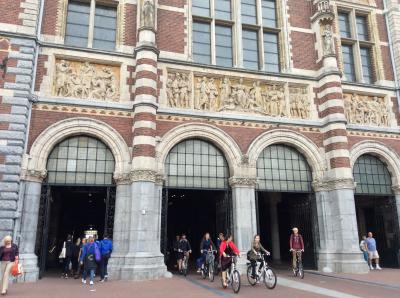 アムステルダム中央駅からのバスを降りて、写真でお馴染みの煉瓦の建物を目指しました。道路の両脇にwith ticketとwithout ticketの表示がありましたが、どこを指しているのか分からず直進。