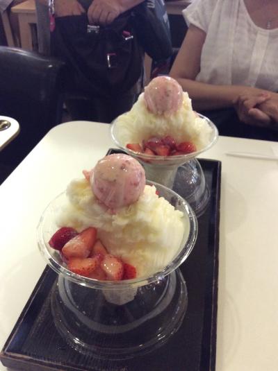 代わりのイチゴかき氷は、ミルク味の氷部分はあまり甘くないので、あっさり食べられました。