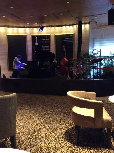 リビングルームに行ってみましたが、生ジャズ演奏と大人の雰囲気でカクテルを楽しめました。メニューを見たら、ソフトドリンクもありました。