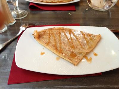 デザートはクレープでした。パリ市内で食べたガレットより美味しかったです。