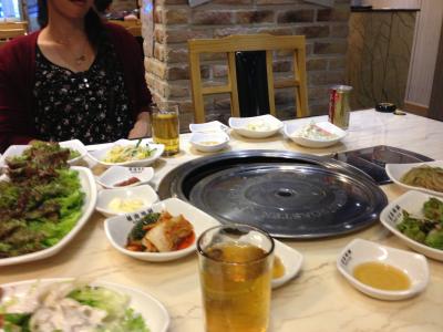 肝心のお肉ですが、まずタレが甘く醤油ベースではないので今ひとつピンと来ませんでした。お肉そのものはまあまあ柔らかかったのですが、和牛等に比べると風味が物足りませんでした。サムギョプサルも脂身が多くて途中でリタイアしましたが、店員さんがこちらのペースお構いなしにどんどん焼いてお皿に乗せて来ました。