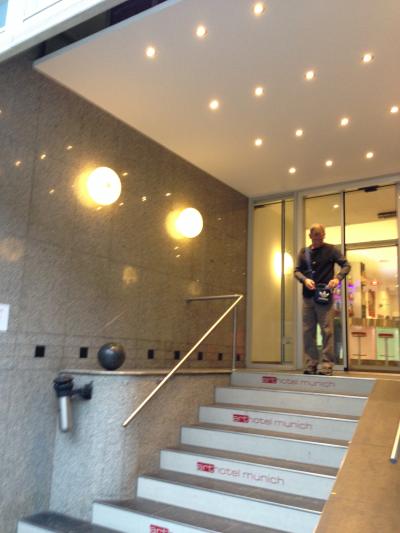 ミュンヘン中央駅に行く時はホテル前の道をまっすぐ進み、交差点を渡ってホームに上がるエスカレーターを使うと楽に着きますよ。