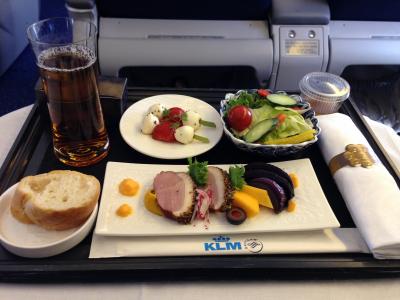 お酒を飲まない私達なのでジュースにしましたが、皆はワイン、シャンパンを楽しんでいました。お料理は2種類から選べて、お酒のおつまみ系のチーズやリゾットかパン・メイン・デザート・アフターコーヒーと機内食のよう...。