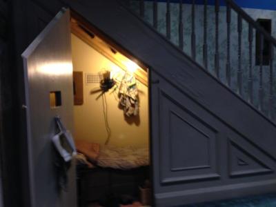 入口のお兄さんにチケットをスキャンしてもらって前に進むと、さっそくハリーの階段下のお部屋発見!さらに進んで行くと映画の中のセットの数々に大興奮です。