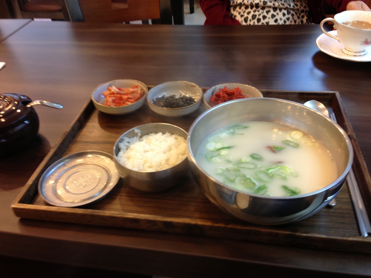 ジンジャーティーはしょうががたっぷりで冬には体の芯から温まりそうです。キムチとこのお茶で「辛い」を連発していたらお店の娘さんに「どれが辛いですか?」とカタコトの日本語で笑いかけられました。