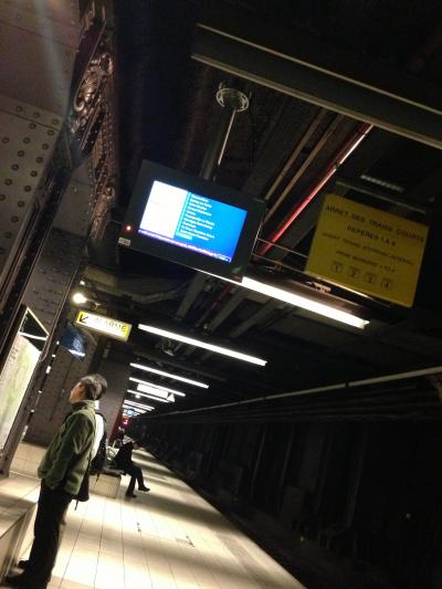 駅は薄暗く、案内表示が出ていますが電光掲示板だけではよくわからなかったです。